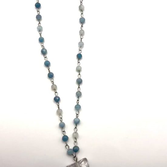 inspired by summer and the nature during this period, this necklace is handmade using 4mm aquamarine gemstone beads and a glass butterfly bead.