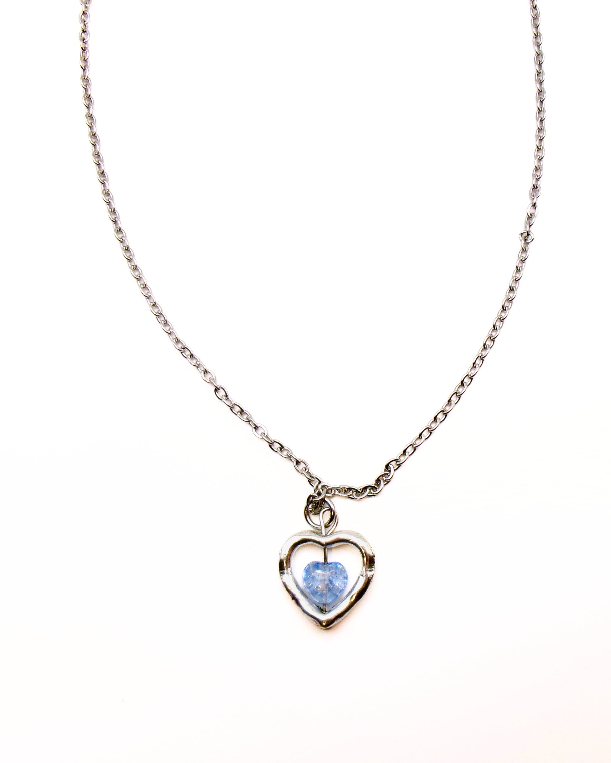 45cm/17.72inch stainless steel necklace, featuring a silver plated heart pendant with a blue czech glass heart.