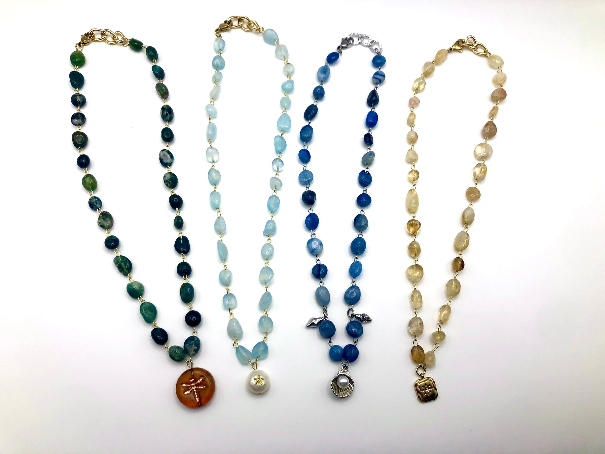 inspired by the untamed beauty of the sea during stormg nights, this dumortierite gemstone necklace is a bold yet minimal statement for those whose energy could channel the churning waves.